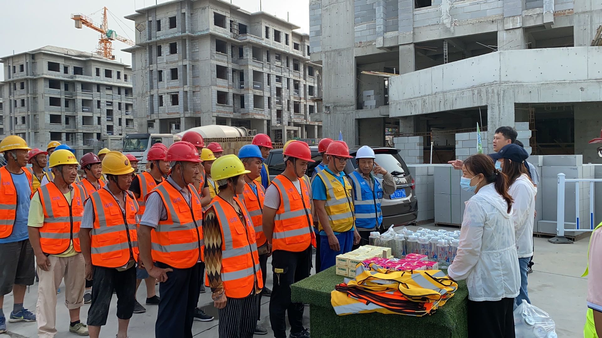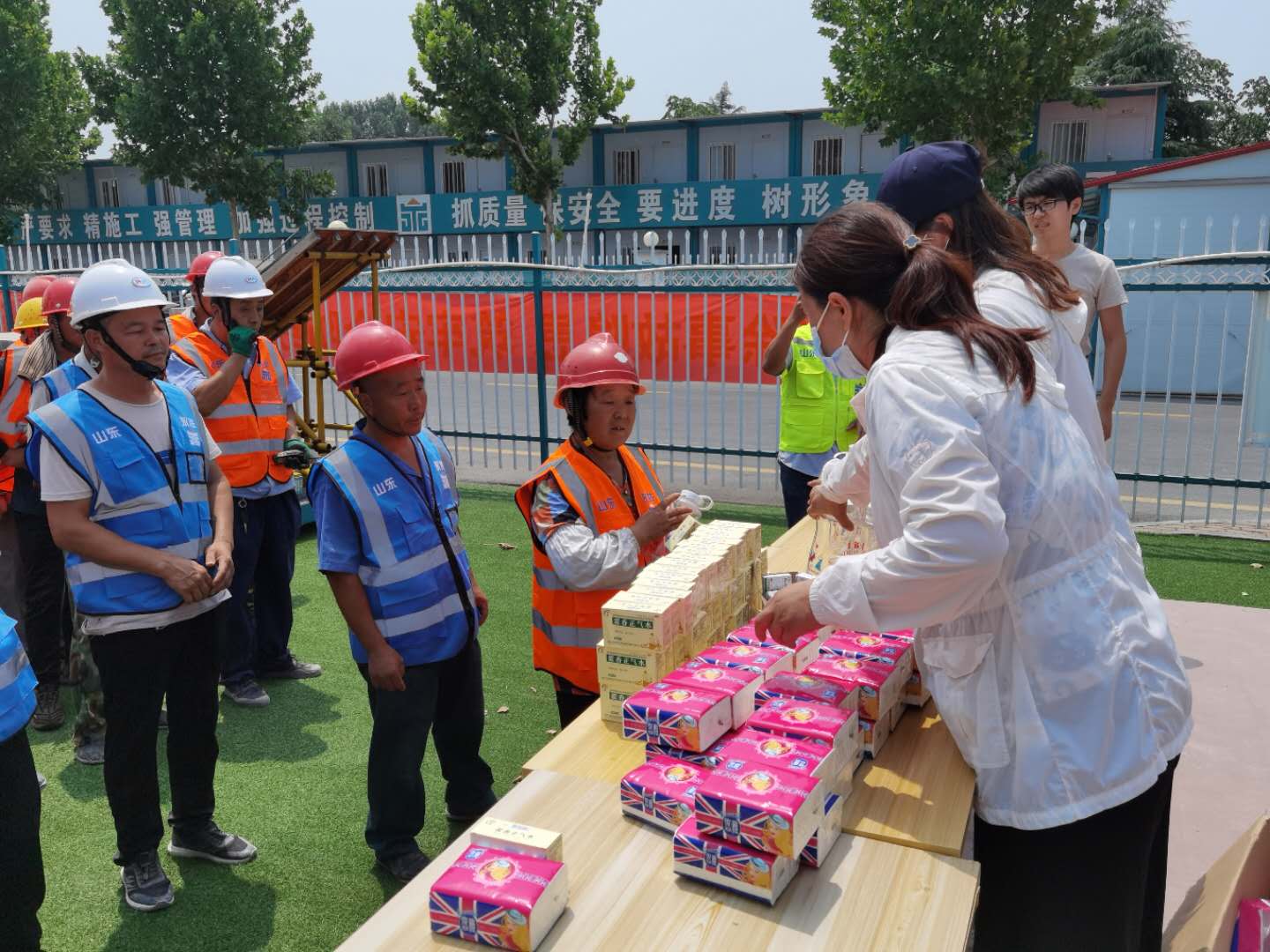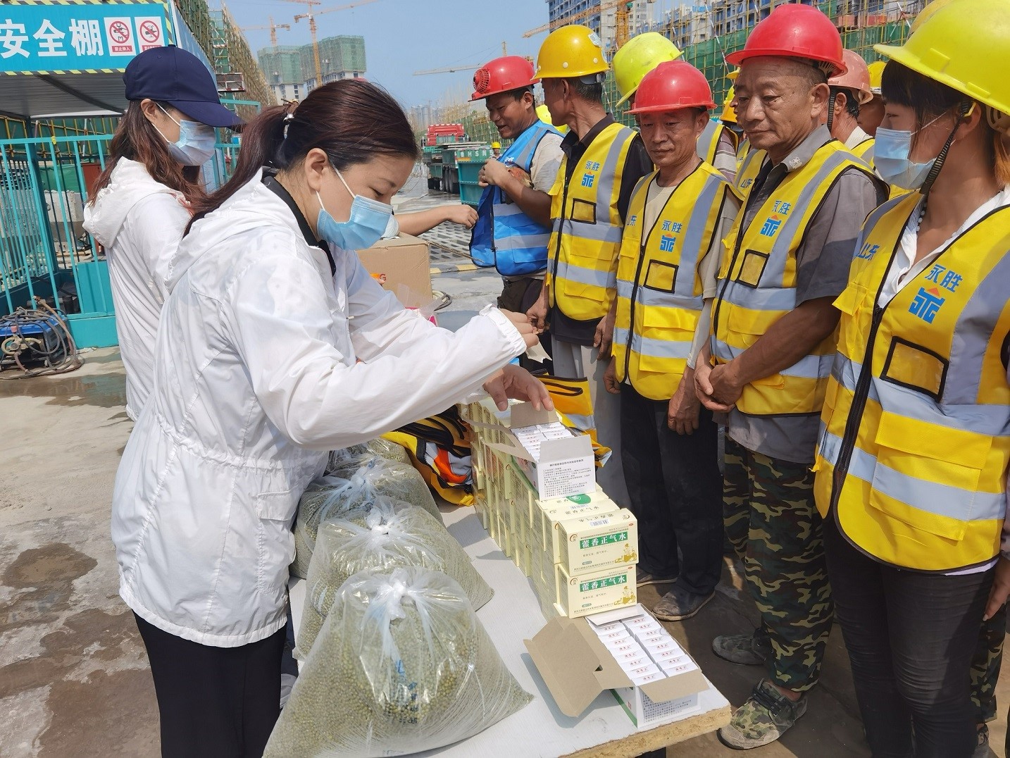 夏日里驕陽(yáng)似火、酷熱難耐,烈日灼燒的工地上,建設(shè)者們埋頭苦干、揮汗如雨,用辛勤的汗水譜寫(xiě)著酷暑下熱火朝天的動(dòng)人畫(huà)面。7月8日,集團(tuán)辦公室、施工管理部代表集團(tuán)公司高管層、工會(huì),深入天繪商業(yè)街、京投SOHO、柳行幼兒園、海達(dá)會(huì)展中心、紫麟府二期、兗州瑞馬等施工現(xiàn)場(chǎng),為工人們送去了綠豆、水杯、風(fēng)油精、藿香正氣水、紙巾等消暑物品,并叮囑工人們保重身體,做好防暑降溫工作,確保安全生產(chǎn),真正把清涼送到了施工現(xiàn)場(chǎng),把關(guān)懷送進(jìn)了工人心坎。