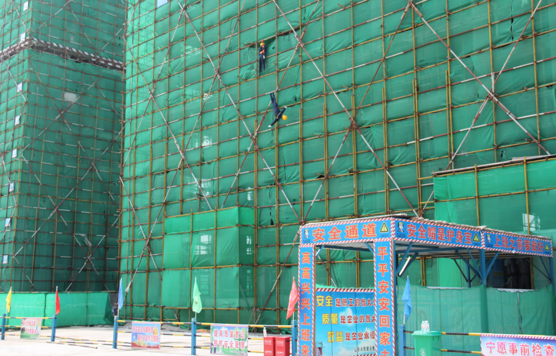 2016年7月8日下午,我公司在泗水縣永勝錦城項(xiàng)目部舉行了建筑工地安全生產(chǎn)高空墜落應(yīng)急救援演練現(xiàn)場觀摩會(huì),以實(shí)戰(zhàn)的方式演練腳手架事故的應(yīng)急救援。