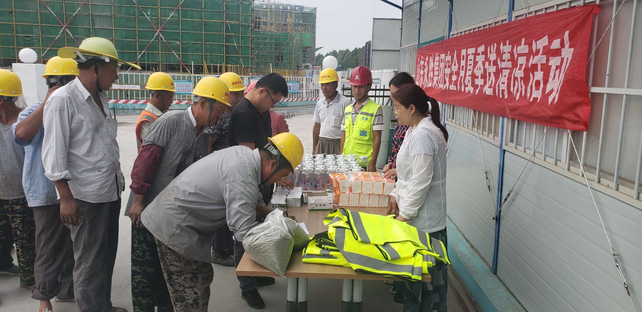 驕陽似火,酷暑難當(dāng)。隨著聒噪的蟬鳴,又迎來了今年的高溫季節(jié),為做好防暑降溫工作,保障施工一線員工和廣大農(nóng)民工的健康權(quán)益,推動(dòng)改善員工生產(chǎn)生活條件,確保一線員工和廣大農(nóng)民工平安度夏。6月18日、19日,集團(tuán)公司施工部,代表集團(tuán)公司高管層和工會(huì),分別到所有在建施工一線,為職工發(fā)放了防暑藥品、涼茶、水杯、綠豆、毛巾等防暑降溫物品1000余件,把清涼送到了施工一線。